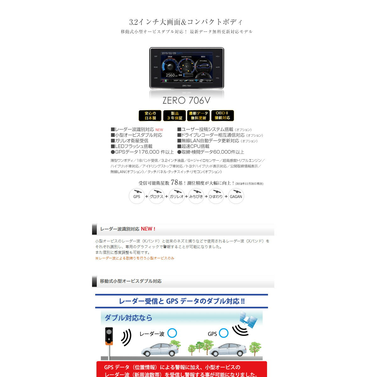 さらに詳しい商品情報は メーカー公式ページへ 保証期間:メーカー保証3年コムテック COMTEC ZERO706V GPSレーダー探知機 OBDII接続対応 ドライブレコーダー相互通信対応 日本製 3年保証