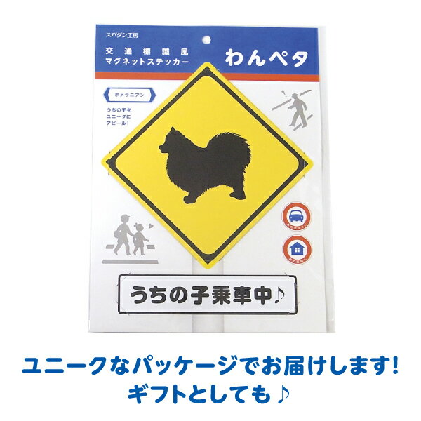 商品名 マグネットステッカー「わんペタ」 ポメラニアン 内容 道路交通標識風の ユニークなマグネットステッカーです。