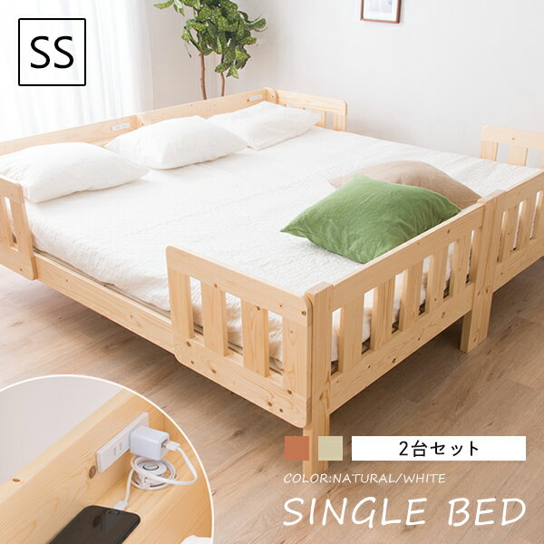 ツインベッド セミシングル 棚なし 連結ベッド 分割ベッド フレーム 子供用 大人用 天然木パイン無垢 親子ベッド カントリー ナチュラル すのこ ベッド下収納 〔D〕【送料無料】
